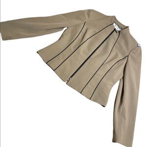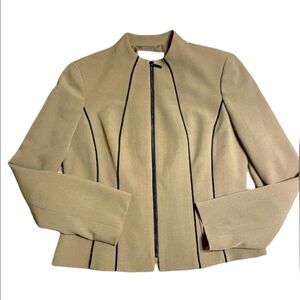 Beige Jones Studio Zip up collarless short Jacket with black piping size 6