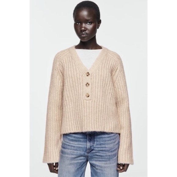 Beige Knit Button Sweater