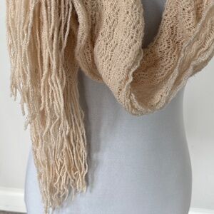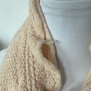 Elevate your look with this chic beige knit scarf. Its soft texture adds a touch of elegance to any ensemble. The photos show where there are a few snags as it is knit. Please view all photos.