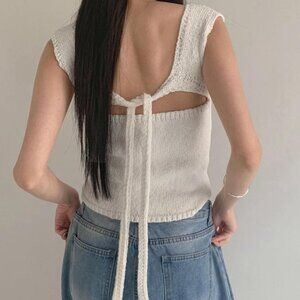 beige knitted crop top with back tie