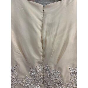 Beige Lace Appliqué Wedding Dress Ruffle Cap Sleeves & V-Neck