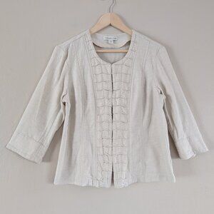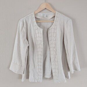 Beige Linen Blend Quarter Sleeve Blazer with Hook and Eye Clasps - Women's Sz 10