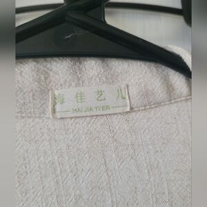 Super cute linen short robe with fabric button closure. It's heavy weight and sturdy. Worn once.