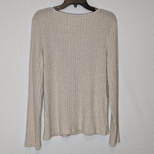 Beige Long Sleeved Ribbed Faux Wrap Soft Pullover Slim Fit Sweater; Size XL