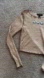 Beige ribbed tee featuring three embroidered alien faces. Trendy and fun!