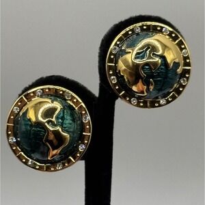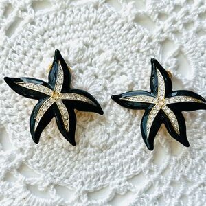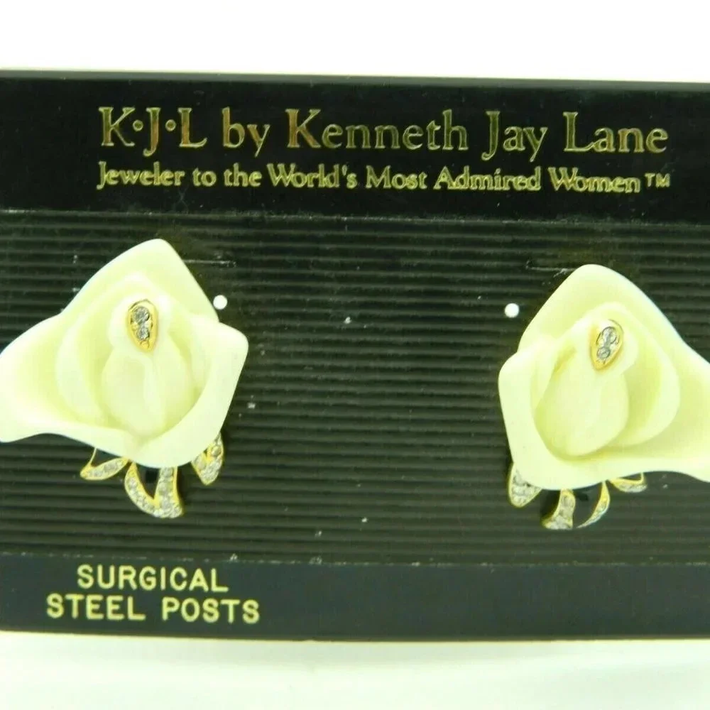 Ivory Colored Lucite Rose Flower Enamel Rhinestones Post Earrings KJL Kenneth Jay Lane