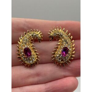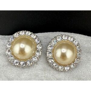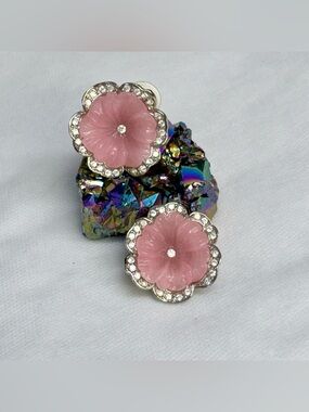 Beige Lucite Rose Flower Enamel Rhinestones Post