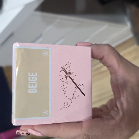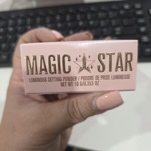 Elegant pink box with gold lettering for Magic Star setting powder.