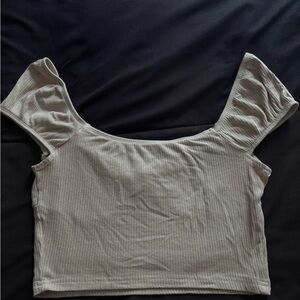 Elevate your style with this chic beige off-shoulder ribbed top. Perfect for any occasion, this top offers a flattering fit and a trendy design.