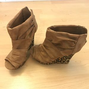 Beige Open Toe Angle Leopard Heel Boots
