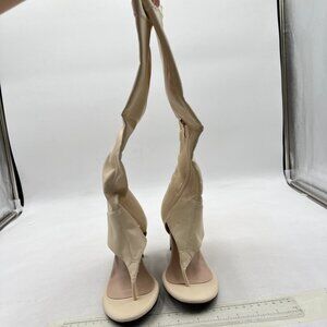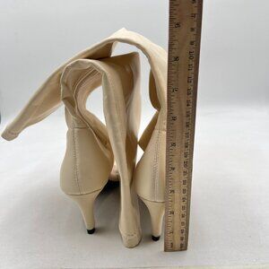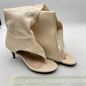 Beige Open Toe Sandals Booties Kitten Heels Flip Flop Side Zippers Shoes