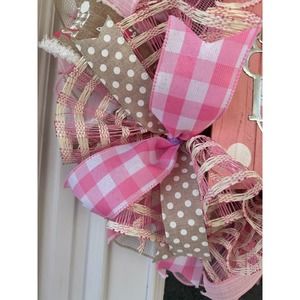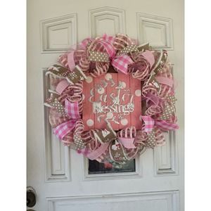 Beige Pink Easter Blessings Deco Mesh Ribbon Spring Wreath Front Door Hanger