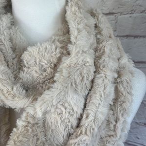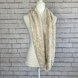 Beige Plush Infinity Cowl Scarf. Great condition. Extremely soft plush material. Rosebud swirl pattern. 31” x 7.5” wide
