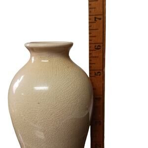 🌾 Vintage beige pottery vase with natural crazing and rustic finish. 6" tall. Perfect for small floral arrangements or cozy shelf styling.