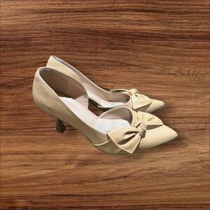 Beige Pump with Bow, Size 8 1/2. 3 1/4” heel.