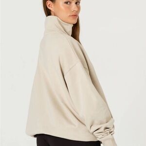 Stay cozy and stylish with this beige quarter-zip sweater. Perfect for layering and casual outings.
