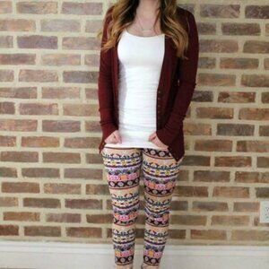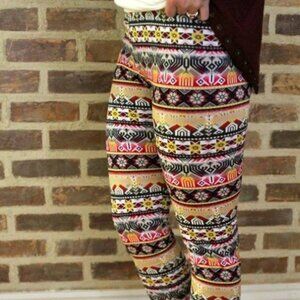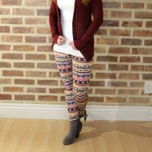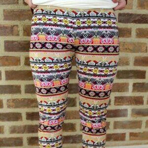 Beige Red Pattern Tribal Aztec Print Soft Leggings NWT XS Boutique
