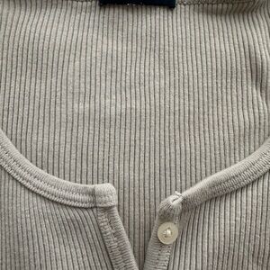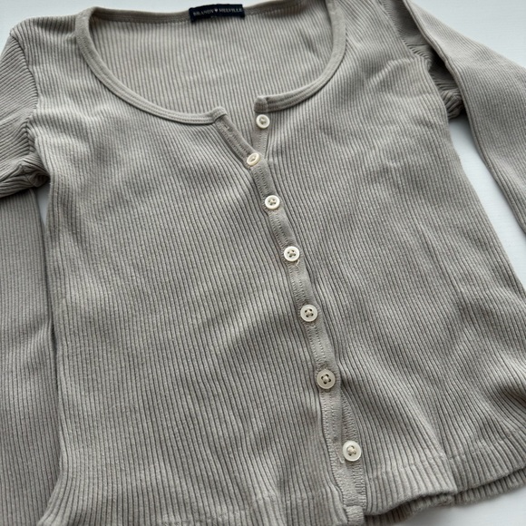 Beige Ribbed Button-Up Cardigan