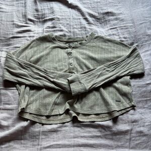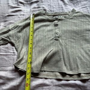 Chic beige ribbed top with button-up design. Ideal for everyday style. *Some piling, shown in photos