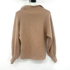 Beige Ribbed Collared Split Neck Sweater Women's Small