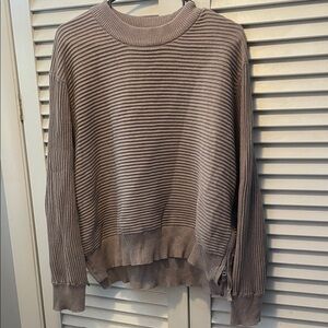Stay stylish and comfortable with this ribbed knit sweater. Perfect for any occasion, this beige sweater offers a classic look with a modern twist. Has zippers on left and right hips