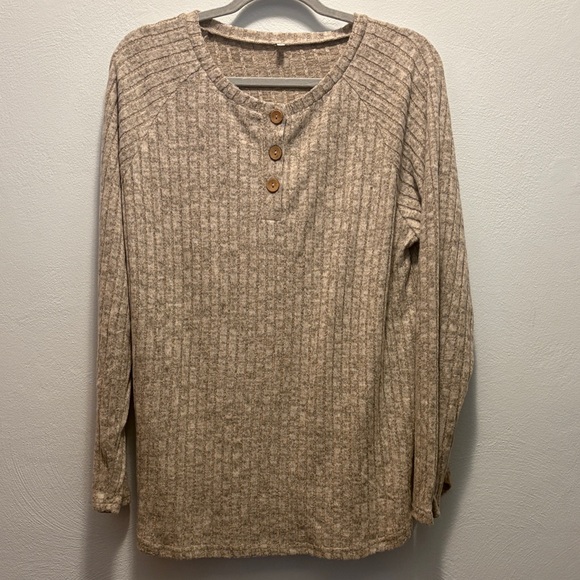 Cozy beige ribbed sweater with button details. Perfect for layering. Brand new bought off Amazon. Size large. Smoke free, lots of stretch and super soft.