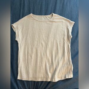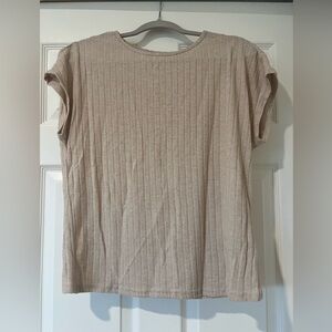 Cozy beige / tan ribbed lounge set. Includes a short-sleeve top and matching pants. Perfect for relaxing at home. Super Soft. Brand new
