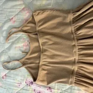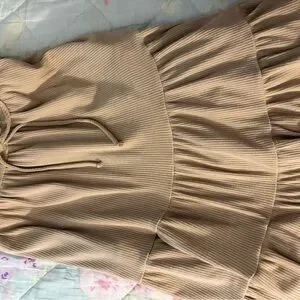 This elegant beige ribbed mini dress is perfect for any occasion. Its soft fabric and flattering fit make it a must-have in your wardrobe.
