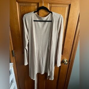 Stylish beige ribbed open cardigan. Perfect for layering.