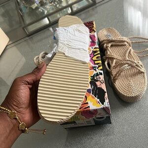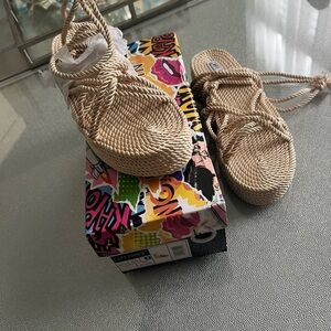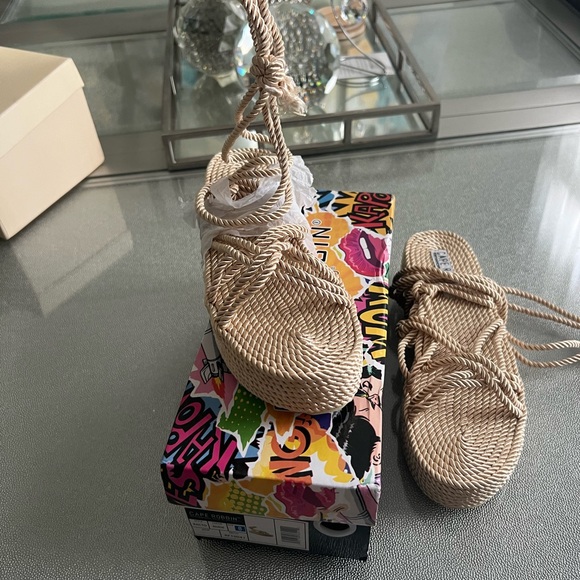 Stylish beige rope sandals with a unique design. Perfect for casual outings.