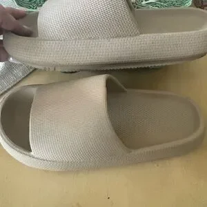 Comfortable beige slide sandals. Perfect for casual wear, beach, or pool!