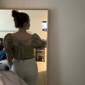 Elegant beige ruched top by Wayf. Ideal for versatile styling.