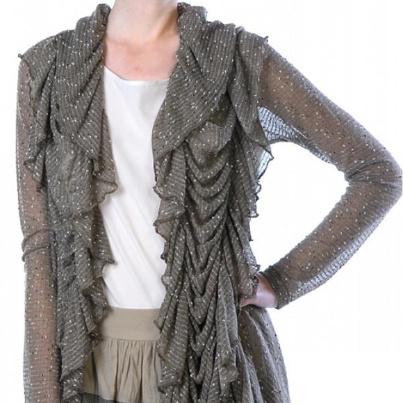 RUFFLE KNIT CARDIGAN WITH FRONT CLASP / 100%POLY KNIT