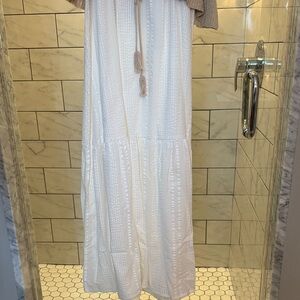 Two piece white dress with crochet tan sweater on top. Bought at boutique. Tags are still attached