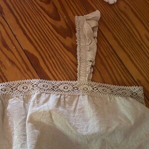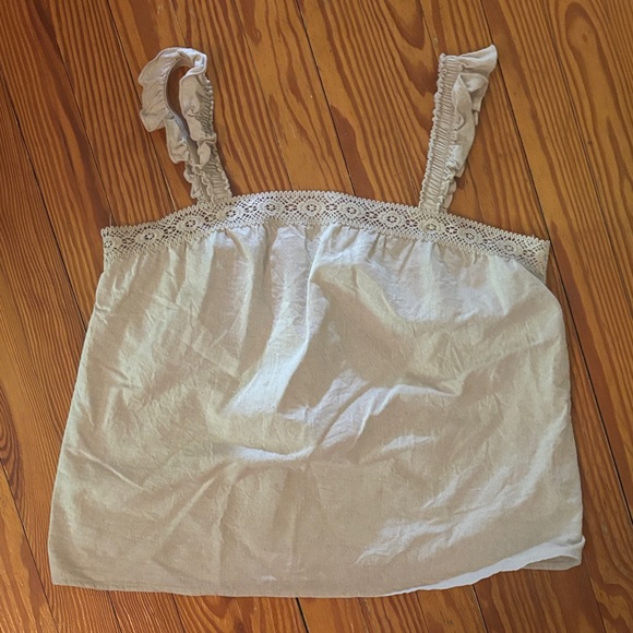 Chic beige top with ruffle straps and lace trim. Perfect for casual outings. Never worn