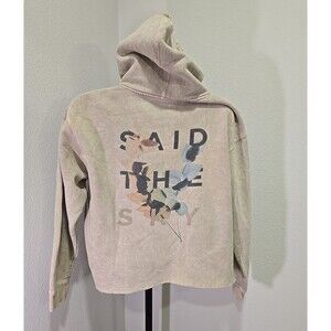 The Beige Said The Sky Marble Hoodie Sweatshirt is a cozy unisex sweater with a relaxed fit and raw hem. Made of a blend of polyester and cotton, this fleece fabric hoodie features a novelty pattern, long sleeves, and a drawstring closure for added comfort. The hoodie also includes a hooded accent and a round neckline, making it perfect for the winter, fall, or spring seasons. With the unique Said The Sky Marble theme, this pullover hoodie is a stylish addition to any wardrobe.