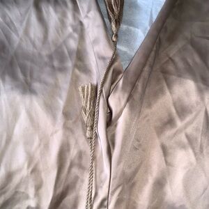 Stylish beige satin jogger pants with elastic cuffs. Have pockets on both sides. Very comfy pants. NEED GONE ASAP