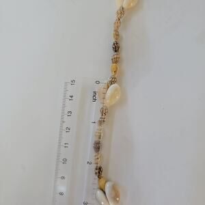 Bring a touch of coastal beauty to your style with this beige shell bead necklace. Measuring approximately 32 inches in length, this handmade necklace is crafted with natural seashell beads in warm cream, beige, and sandy brown tones. The shells are interspersed with smaller seed beads and polished accents, creating a lightweight and textured design that reflects the beauty of the ocean. The necklace slips easily over the head without a clasp, making it both comfortable and versatile. Each shell bead is unique, showcasing organic variations in color and pattern that make this necklace truly one of a kind. Perfect for layering with other necklaces or wearing on its own as a statement piece, this necklace is ideal for beach lovers, summer outfits, and boho-chic style. Whether you're strolling along the shore, dressing up for a tropical vacation, or gifting someone who loves the sea, this necklace is a timeless and natural accessory.