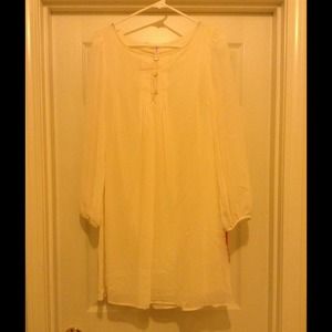Simple shift dress with a creamy color. Pair it with bright colored heels and a necklace to add a pop of color! New! 🌸