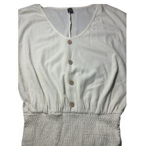 Effortless chic vibes with this SHEIN beige v-neck top, size XL (US 12–14, EU 44). This flattering piece features a shirred waist that cinches the silhouette beautifully, four cute buttons at the neckline for detail, and a soft 100% polyester fabric that’s easy to style.