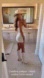 Stylish strapless denim romper / skort dress in beige. Features a unique knot detail. Does not come with the gold belt.