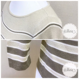 Nice neutral colors in this striped sweater top. Great addition to your career wardrobe. Lightweight stretch fabric. No pilling. Excellent used condition.