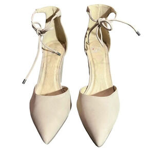 Beige Suede Block Heel Ankle Tie Pointed Toe Heels / Pumps Women's Size 10M