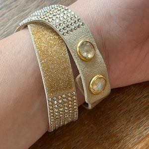 Beige Swarovski Multi Strand Black Wrap Around Bracelet • Adjustable
