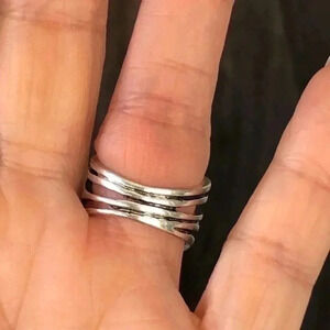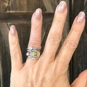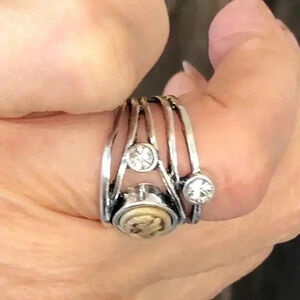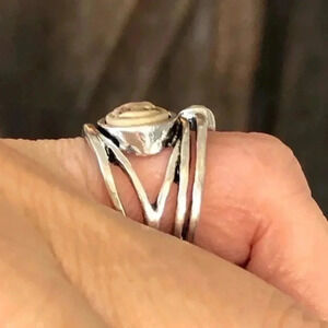 Beige Tan Brown Modern Abstract Cameo Lady Portrait Crystal Silver Ring NWT