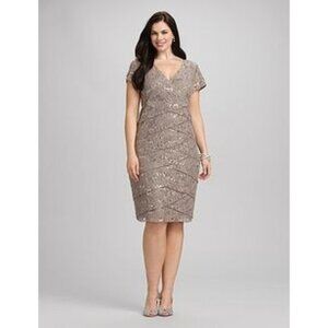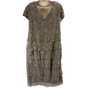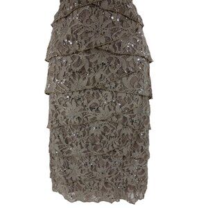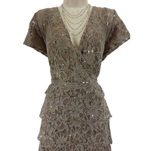 Beige Tan Lace Tiered Dress w/Sequins Size 14 Special Occasion Wedding Party