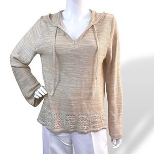 Beige Tan & White Space Dye Crochet Sweater Hoodie It’s Our Time Misses XL