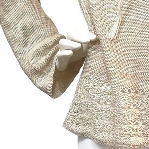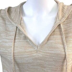 Beige Tan & White Space Dye Crochet Hooded Knit Sweater Misses Sz XL