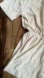 Stylish beige button-up romper with short sleeves and elastic waist. Small discoloration barely noticeable under right armpit. Attempted to show in photo and video, price reflected. Does not alter the look.