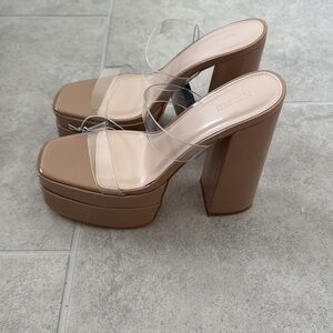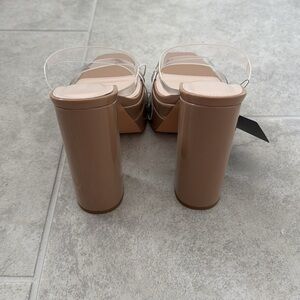 Step out in style with these elegant beige heels featuring transparent straps. Perfect for any occasion, these shoes offer a chic and modern look.